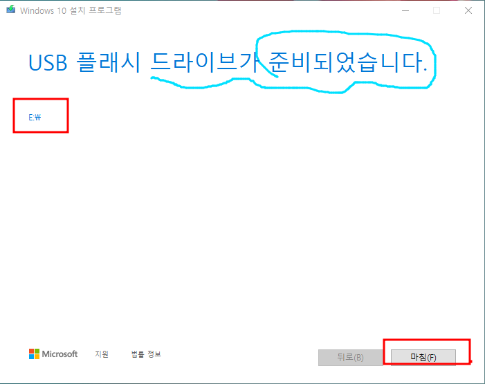 이제 윈도우10 부팅 가능 USB 드라이브가 준비되었습니다.