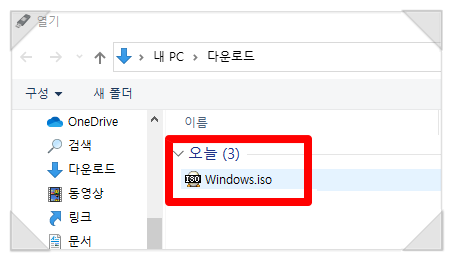 [선택]클릭후 다운받았던 windows.iso파일을 선택하세요.