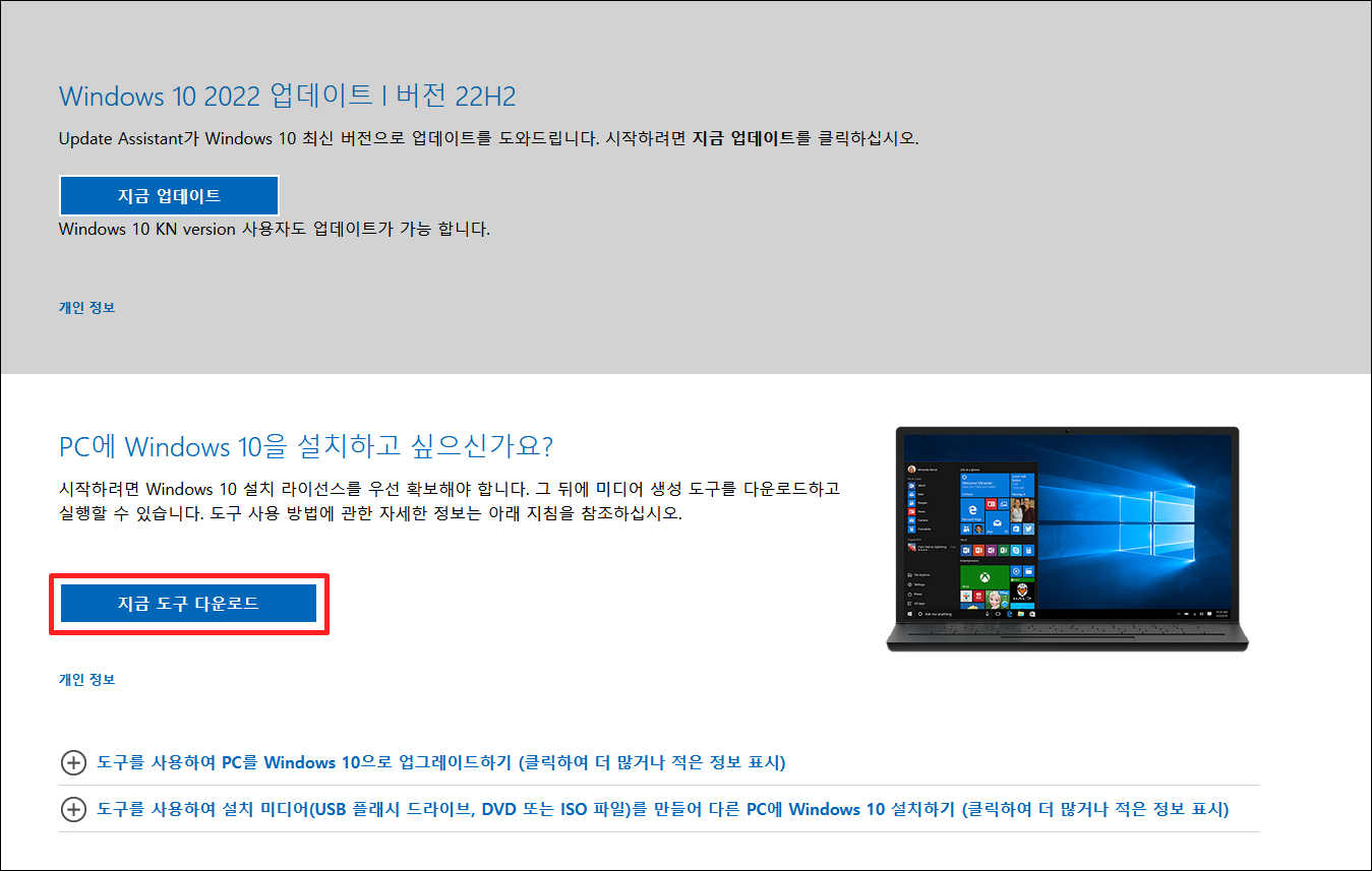 윈도우 10 설치 도구 다운로드