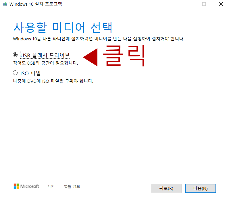 "USB 플래시 드라이브"를 선택하고 "다음"을 클릭하세요.