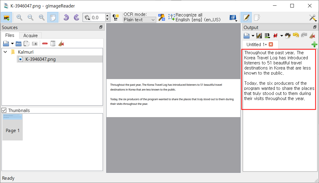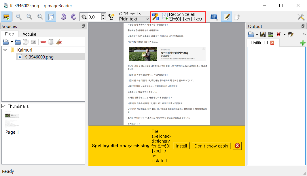 gImage Reader 프로그램의 장점은 영어, 독일어, 프랑스어 등