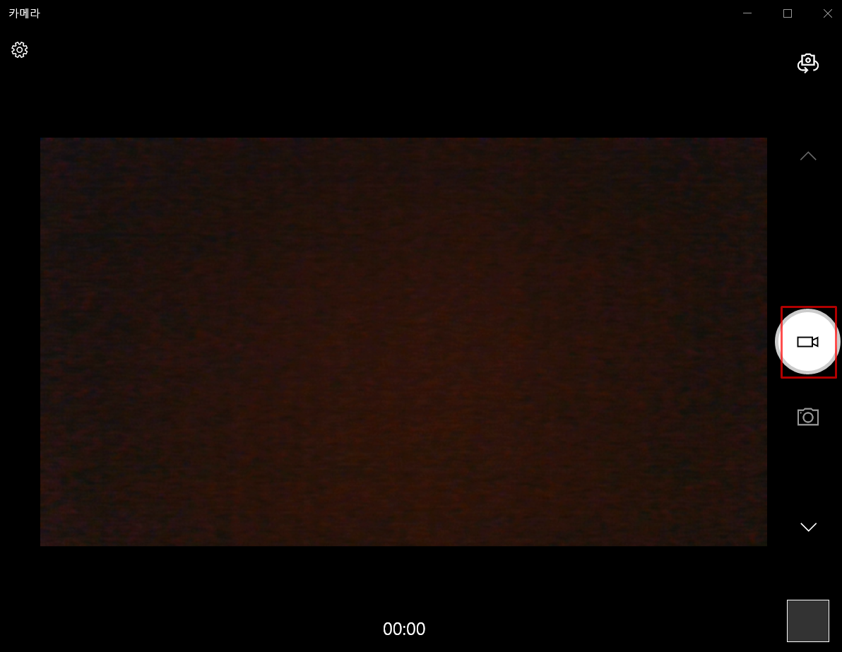 카메라 앱이 실행되면, 오른쪽에 있는 "동영상 촬영" 아이콘을 클릭합니다.