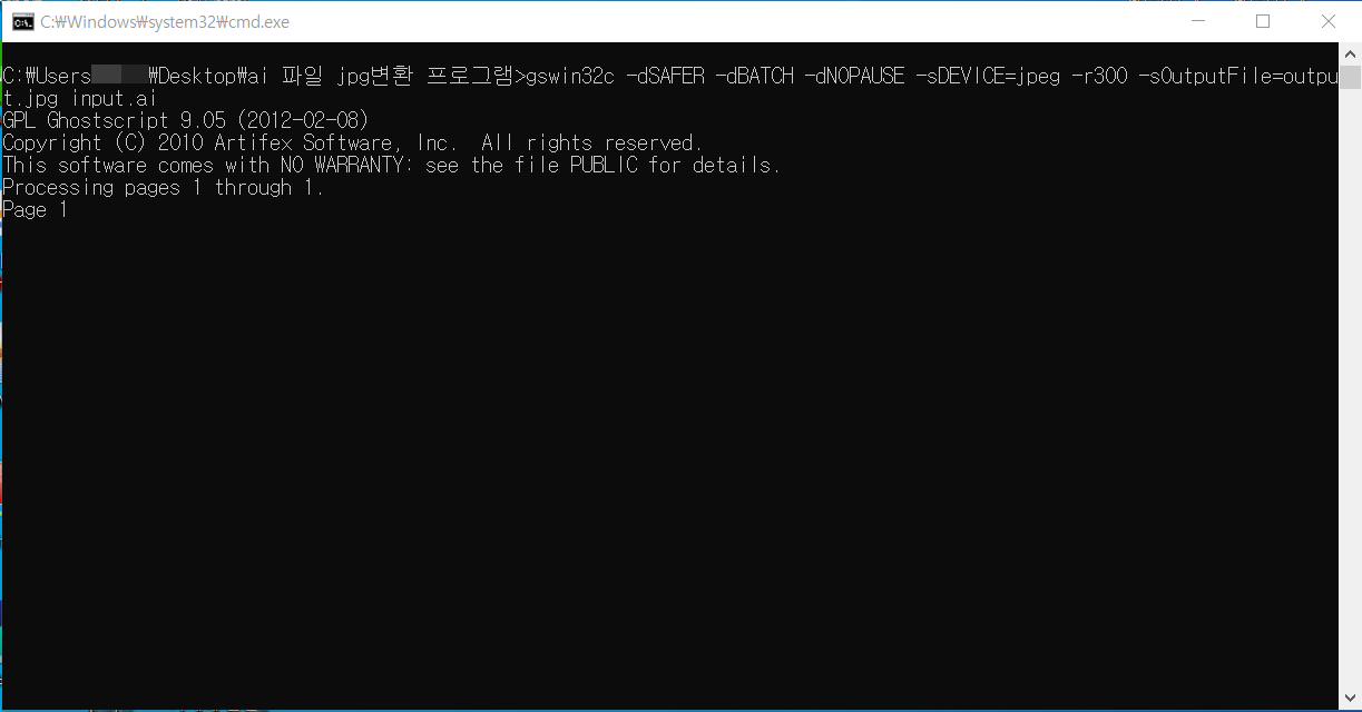고스트스크립트를 이용하여 AI 파일을 JPG로 변환하려면, 커맨드라인 툴인 gswin32c.exe를 이용하여 다음과 같은 커맨드라인 명령을 내리면 됩니다.