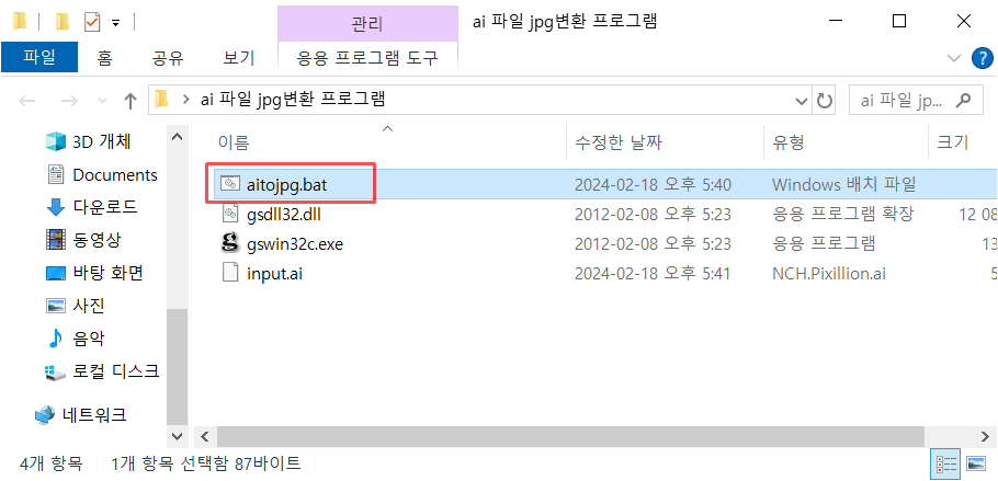 파일이름을 변경했으면 aitojpg.bat 파일을 더블클릭해 실행해주세요.