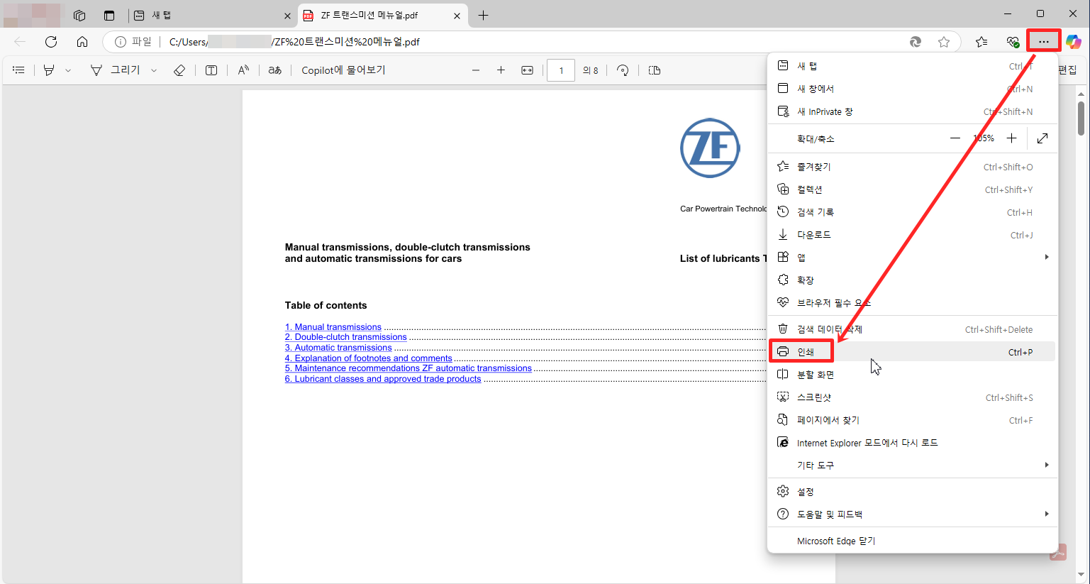 3. 인쇄 버튼을 클릭한다. (단축키 Ctrl+P)