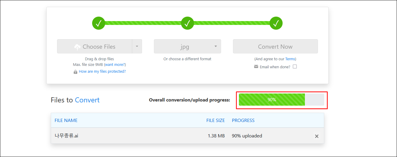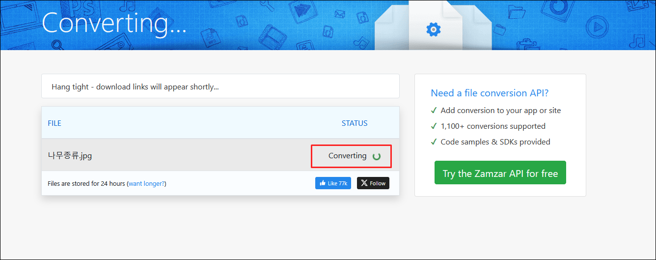 업로드 완료되면 자동으로 변환이 시작이 됩니다.