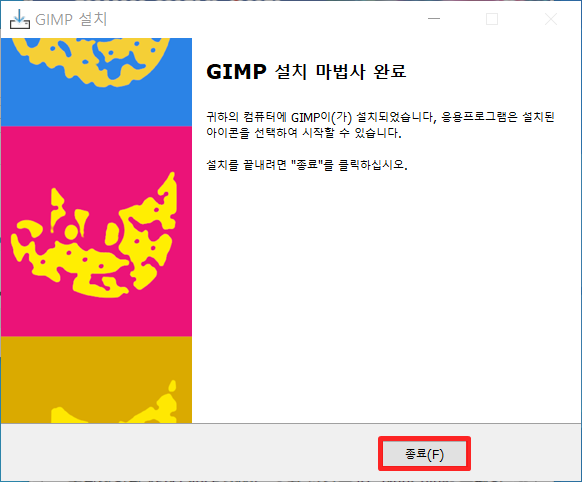 다운로드가 완료되면 설치 파일을 실행하여 화면의 지시에 따라 GIMP를 설치합니다.