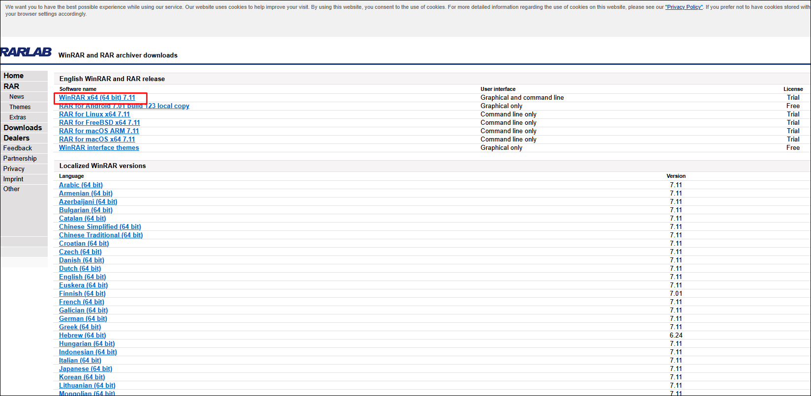 1. [WinRAR 공식 웹사이트]( https://www.rarlab.com/ )에서 프로그램 다운로드 및 설치.
