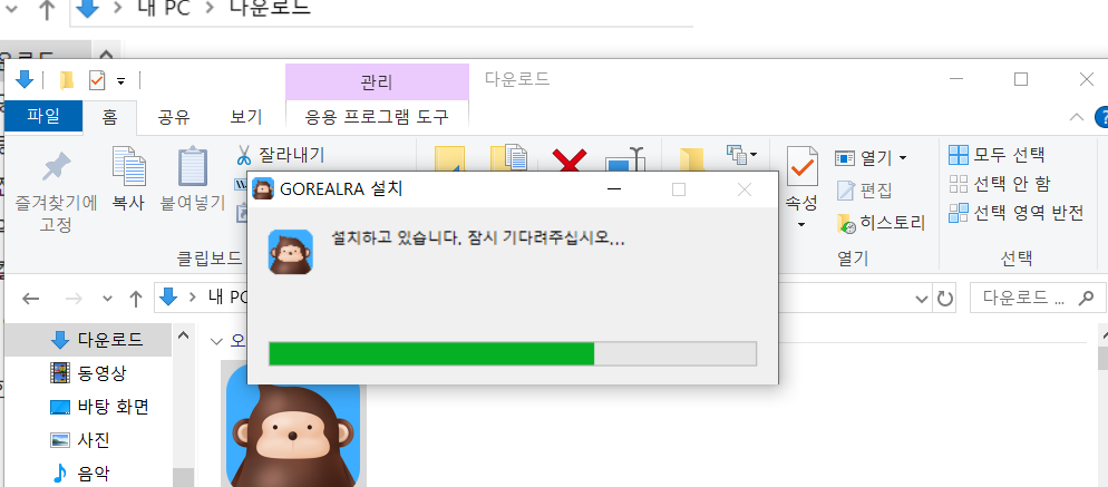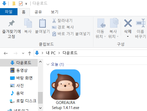 > **참고:** 기존에 설치된 고릴라 프로그램이 있다면, 설치 전에 제거하는 것이 좋습니다.