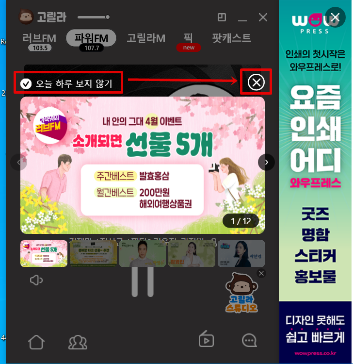 그리고 "오늘 하루 보지 않기" 를 체크후 X 를 눌러 닫아줍니다.