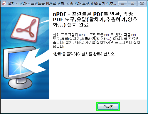 설치 완료 후 바탕화면에 생성된 nPDF 유틸 또는 도구 아이콘을 찾아 더블 클릭하여 프로그램을 실행합니다.
