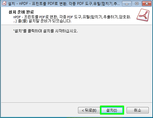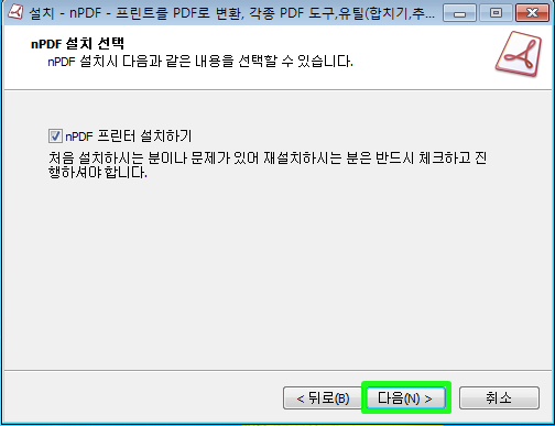 다운로드한 nPDF_0.9.3.1_(32,64bit)설치 파일을 더블 클릭하여 실행합니다.