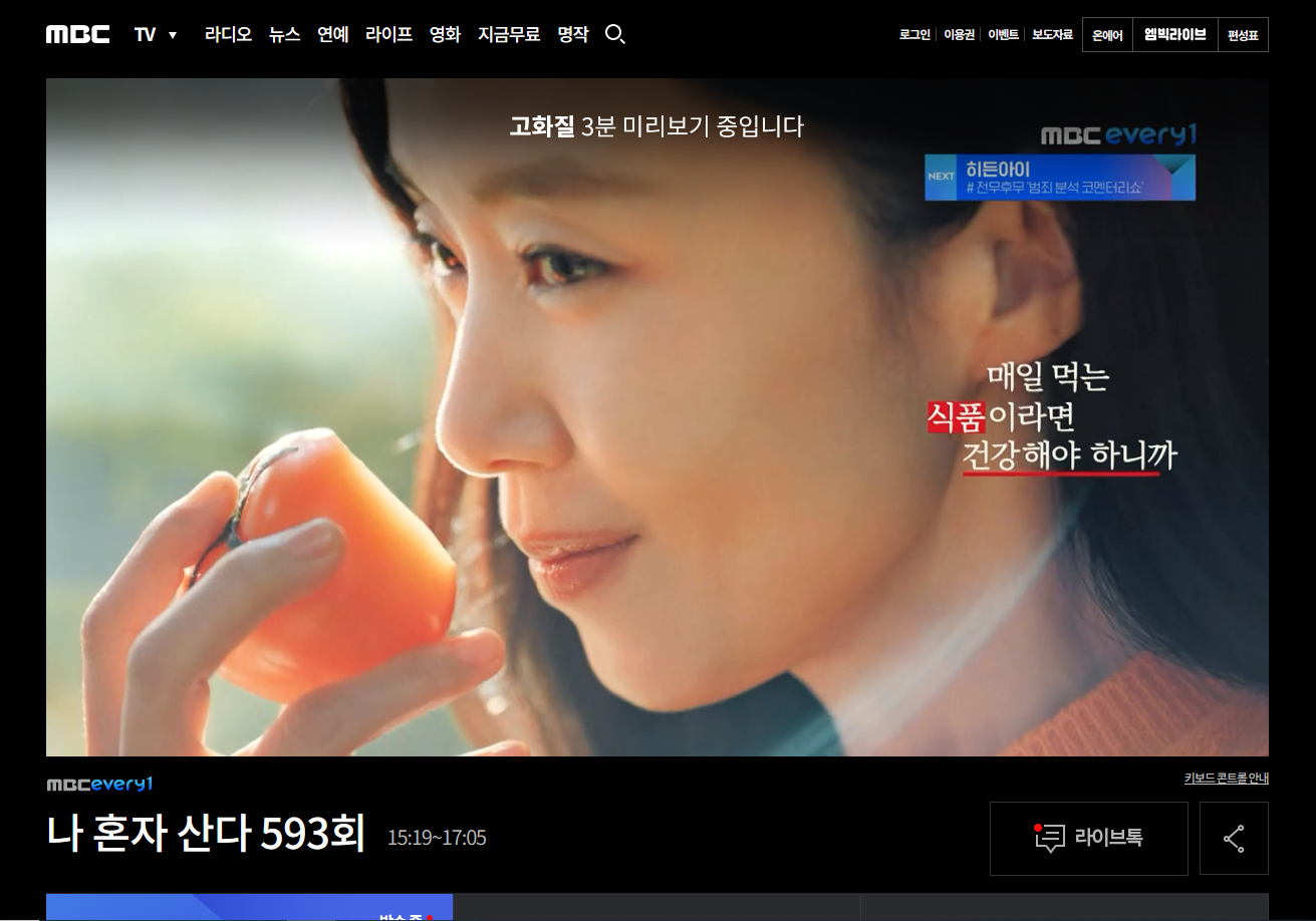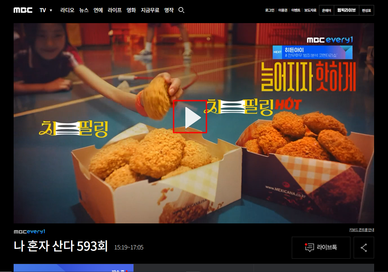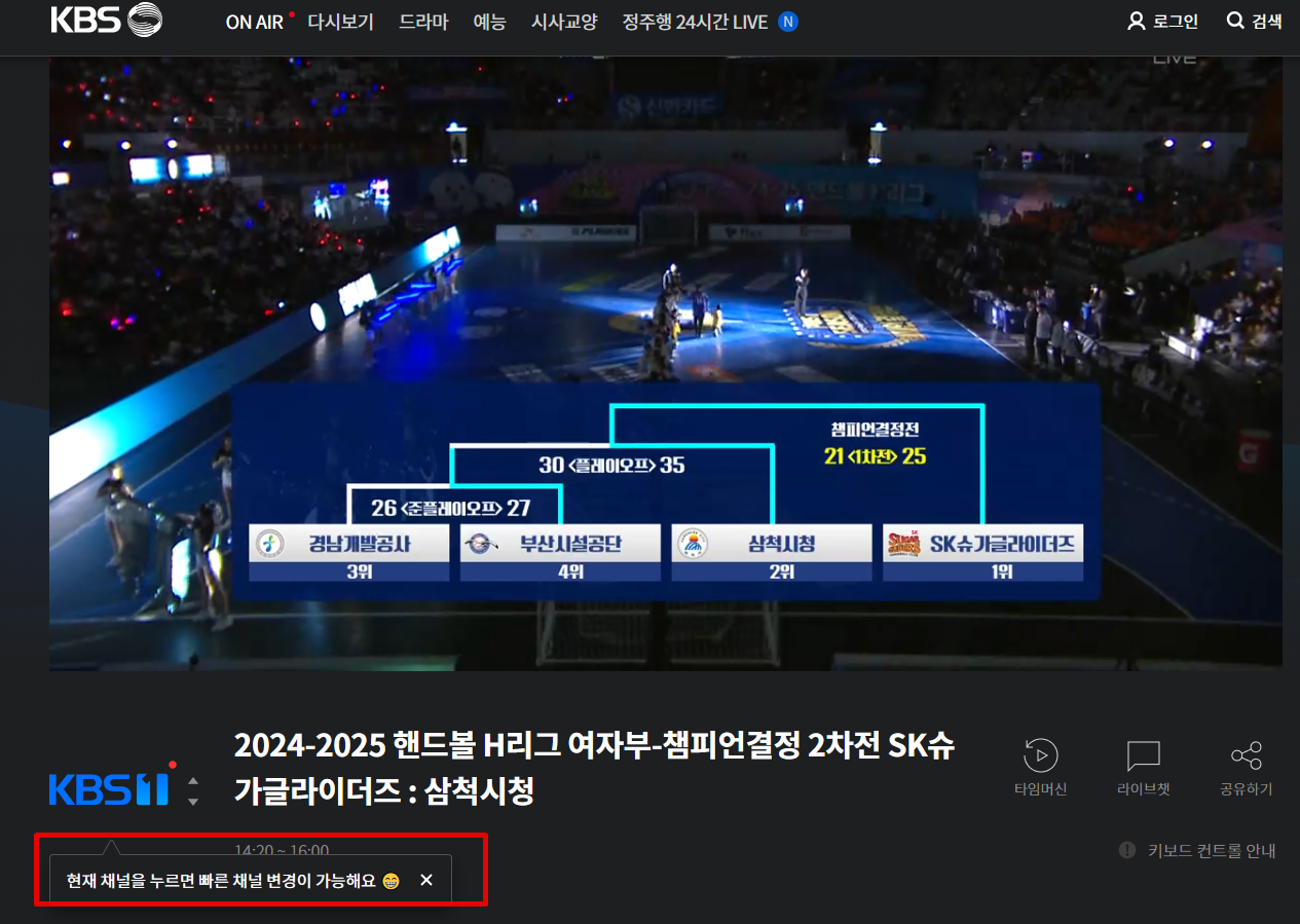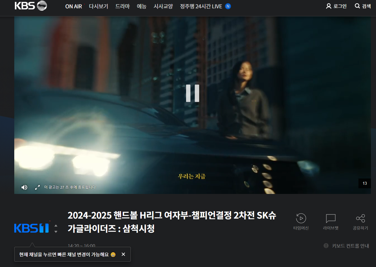 그럼 이렇게 실시간 방송을 시청할 수 있는 페이지로 이동하게 합니다.