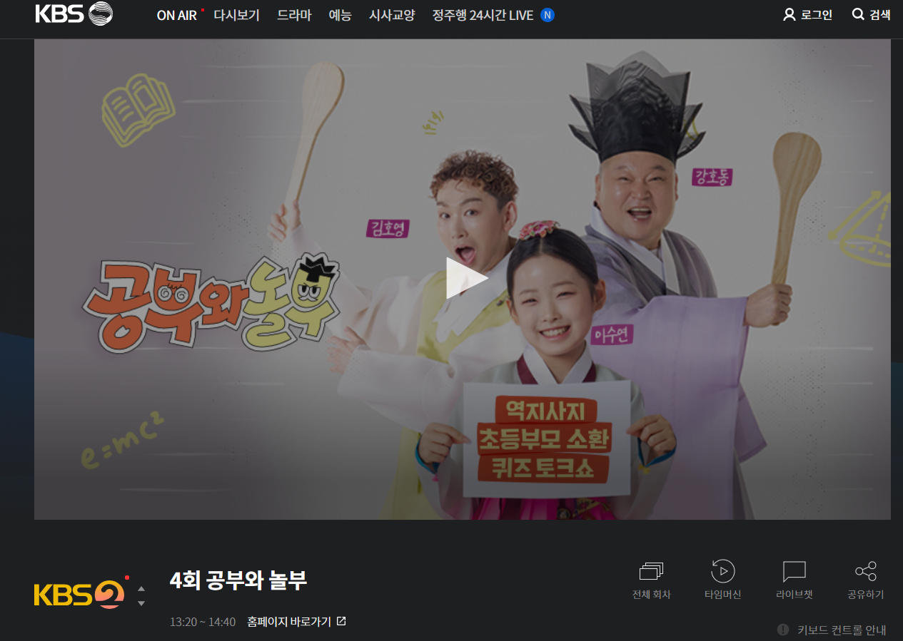 KBS 1TV/2TV KBS 모든 채널을 로그인 없이 시청이 가능합니다.