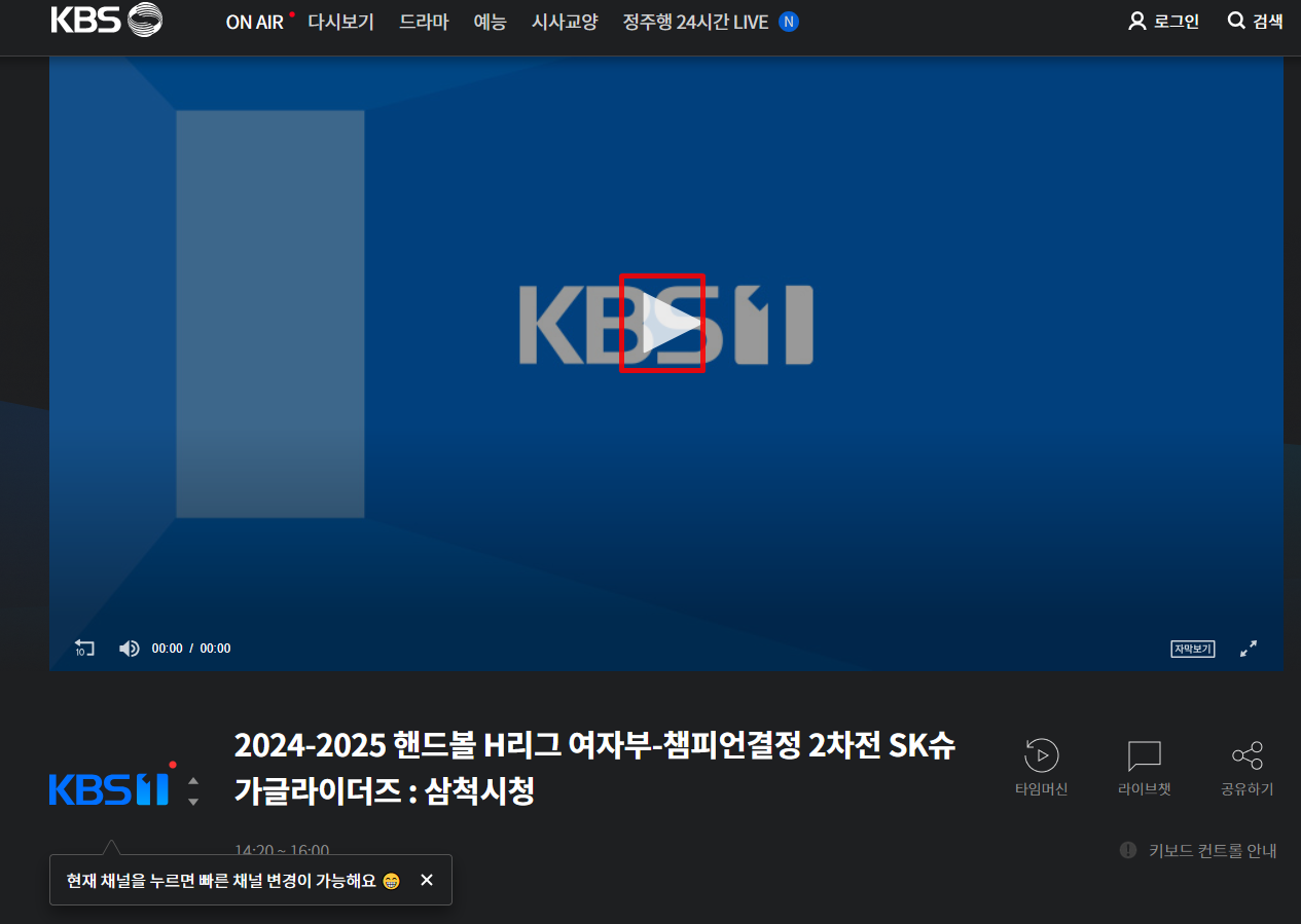 ON AIR 페이지가 열리면 ▷ 를 클릭합니다.