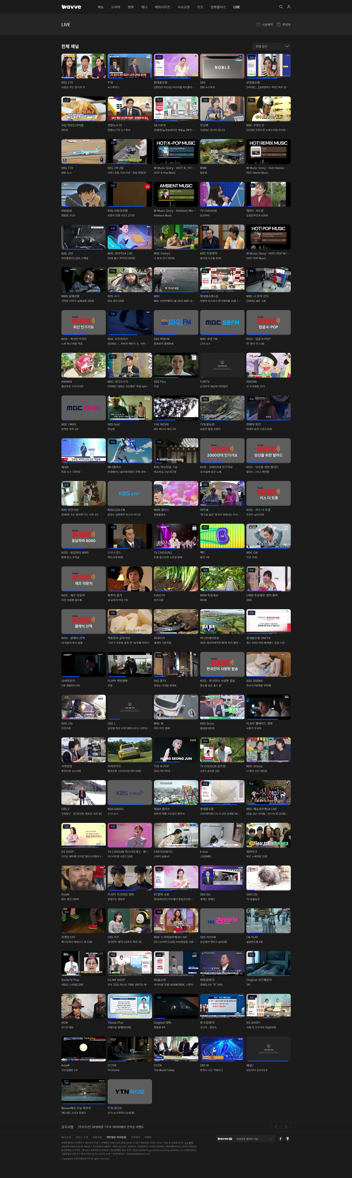 그럼 시청할 수 있는 채널 페이지가 나오는데 wave 는 유료 서비스지만
