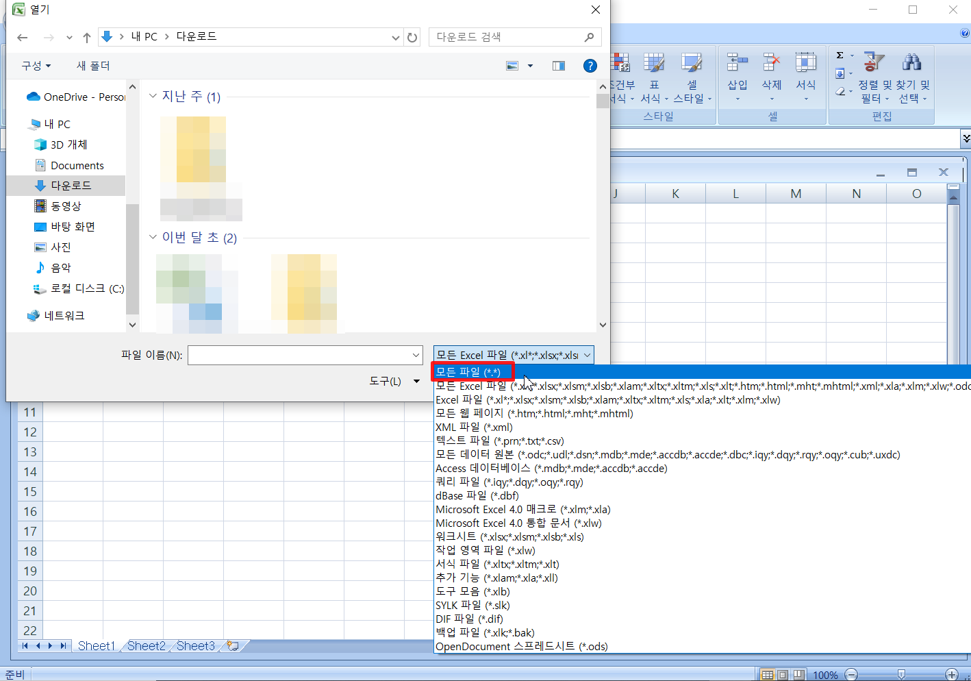 열기 창이 뜨면 위와같이 "모든 파일 (*.*)" 로 변경후
