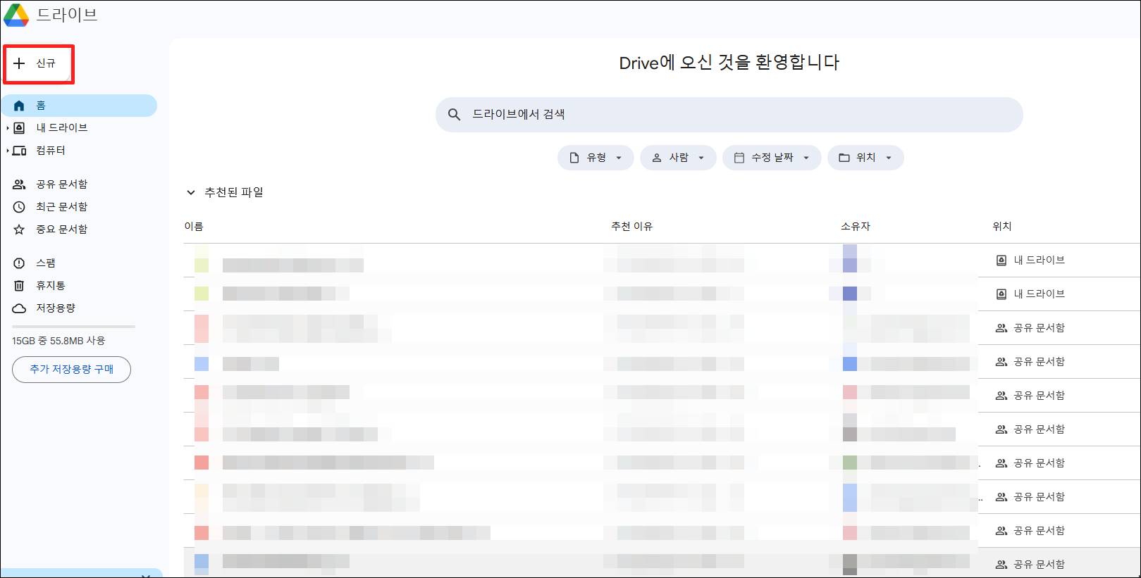 - 왼쪽 상단 "신규" 를 눌러줍니다.