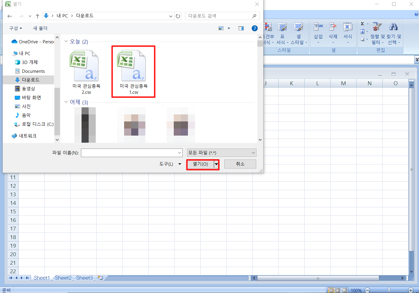 오늘은 csv파일을 엑셀파일로 변환 방법 에 대해 알아보겠습니다.