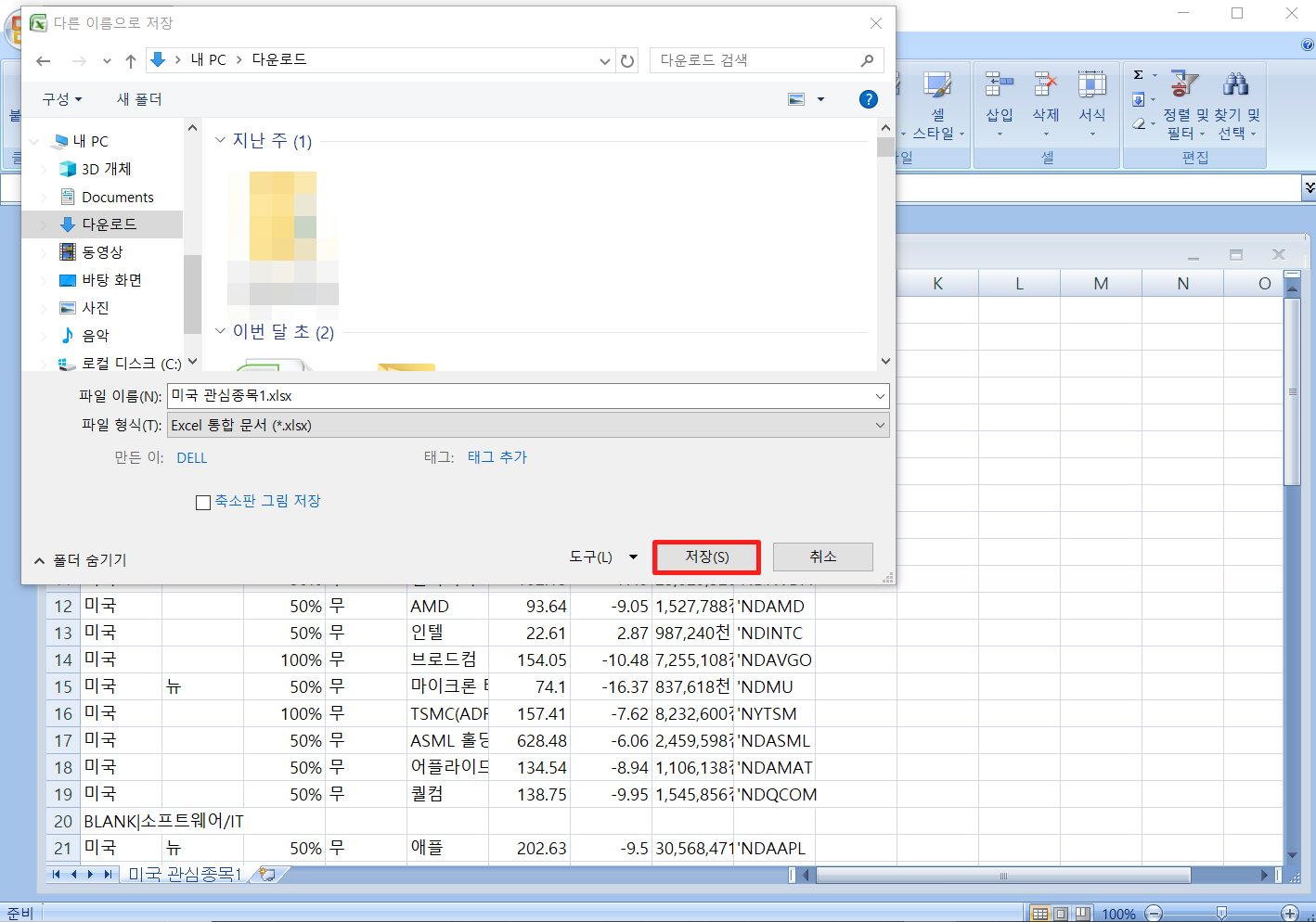 다른 이름으로 저장 창이 뜨면 저장위치를 지정하고 저장을 눌러 주면 됩니다.