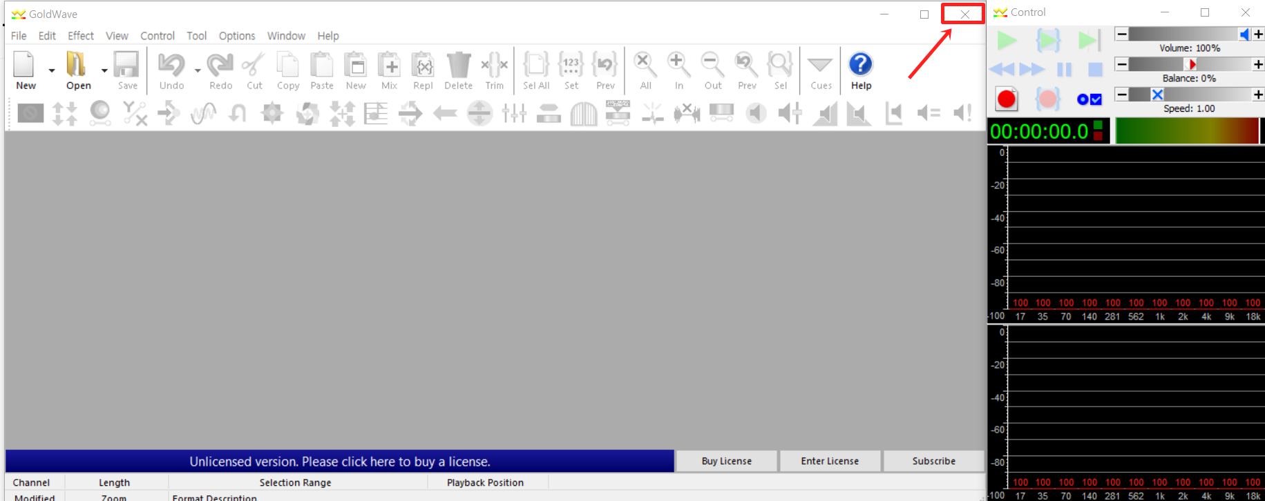 1. 골드웨이브를 실행합니다.