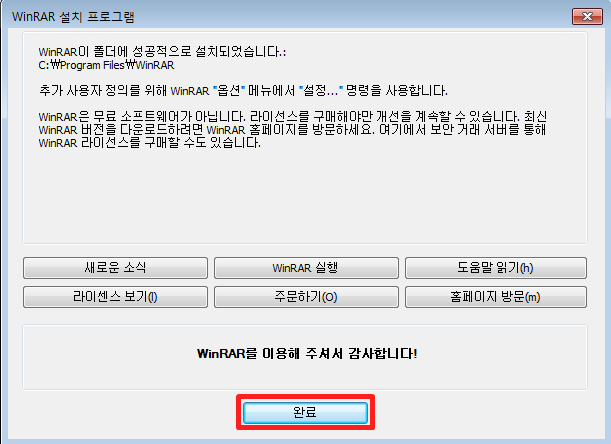 * WinRAR은 무료로 평가판(무기한) 사용이 가능합니다.