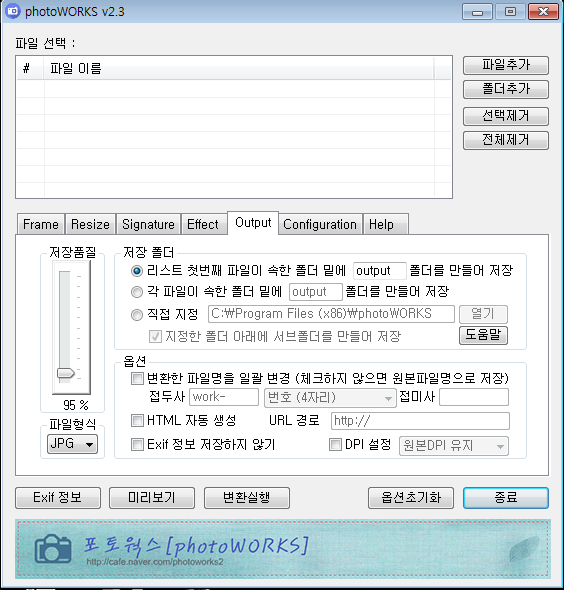 포토웍스는 사진 포맷 변환 기능을 제공하여,