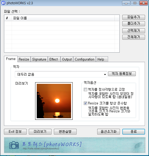 포토웍스 하면 가장 먼저 떠오르는 기능이 바로 ‘사이즈 변경(리사이즈)’ 기능입니다.