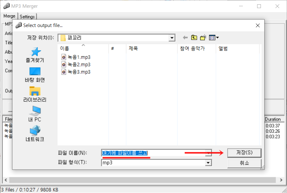 여기서는 녹음1.mp3, 녹음2.mp3, 녹음3.mp3를 예로 들겠습니다.