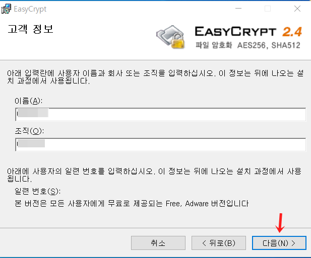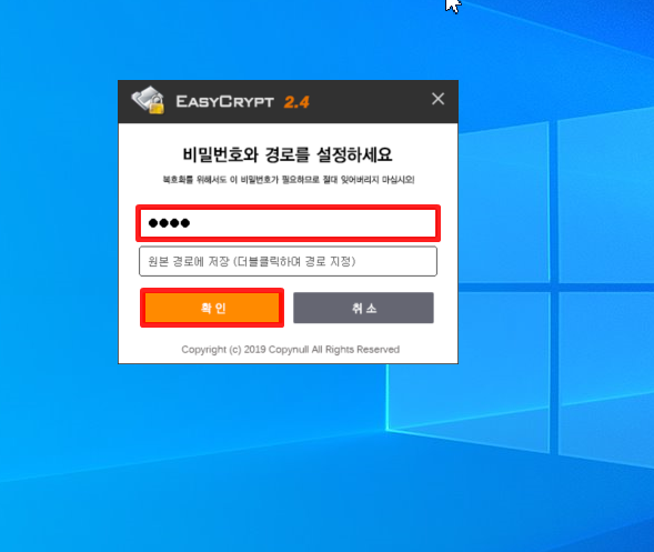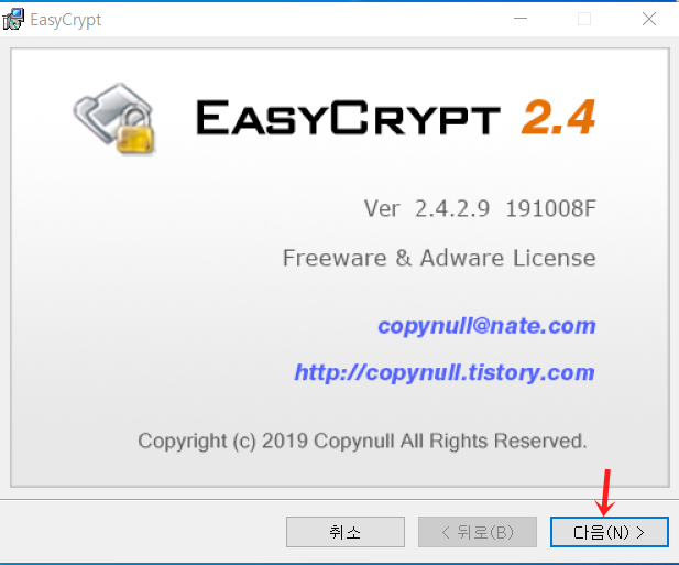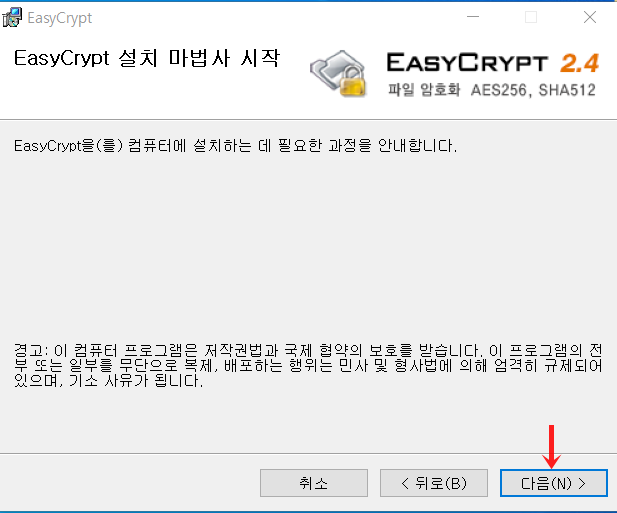 메뉴에서 "암호화 --- EasyCrypt 2.4" 선택