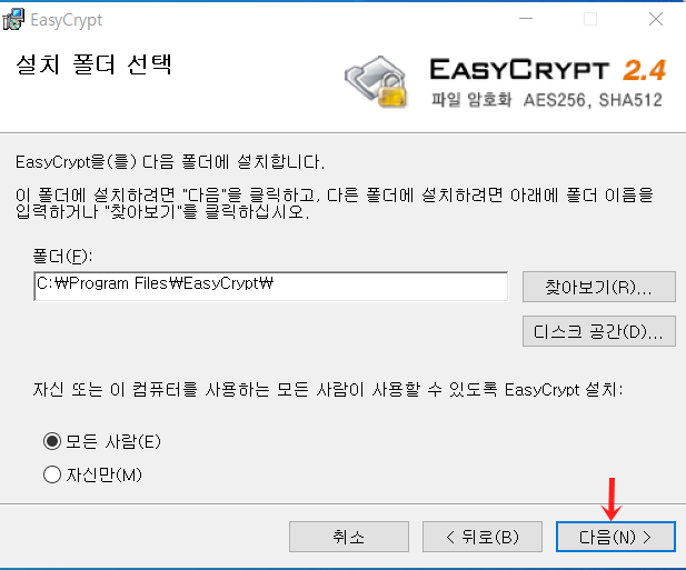 ※ 설치 시 자동으로 “우클릭 메뉴”에 EasyCrypt가 등록됩니다.