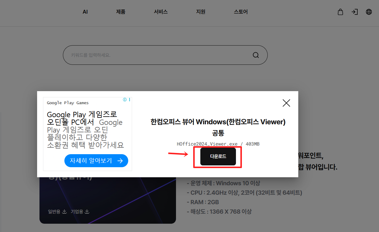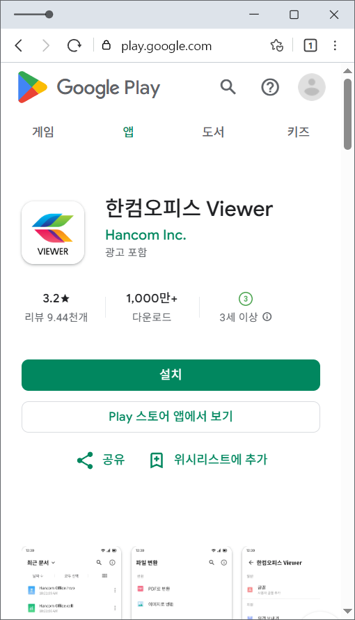 * Google Play에서 한컴오피스 Viewer 모바일 설치