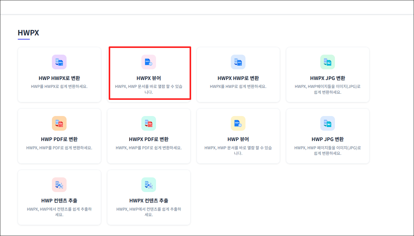 들어가면 다음과같은 화면이 나오는데 "HWPX뷰어" 를 클릭해줍니다.