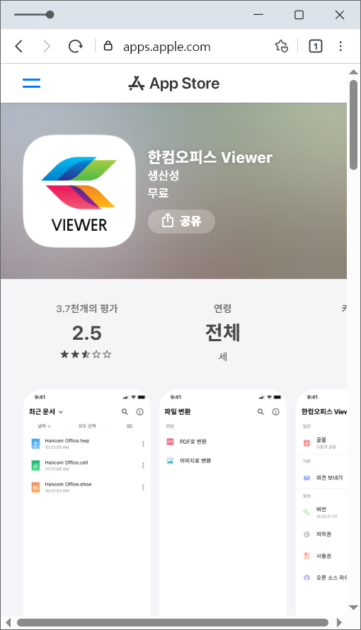 * App Store에서 한컴오피스 Viewer 검색해 설치