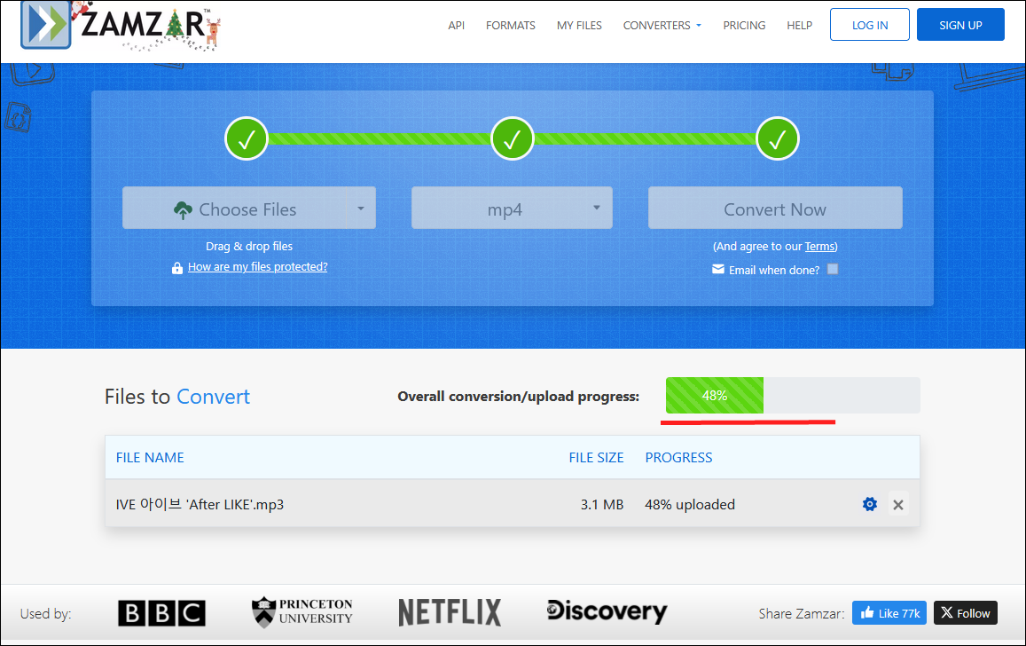 가끔 mp3파일을 mp4파일로 변환할 때가 있습니다. 이럴 때 유용한 사이트입니다.