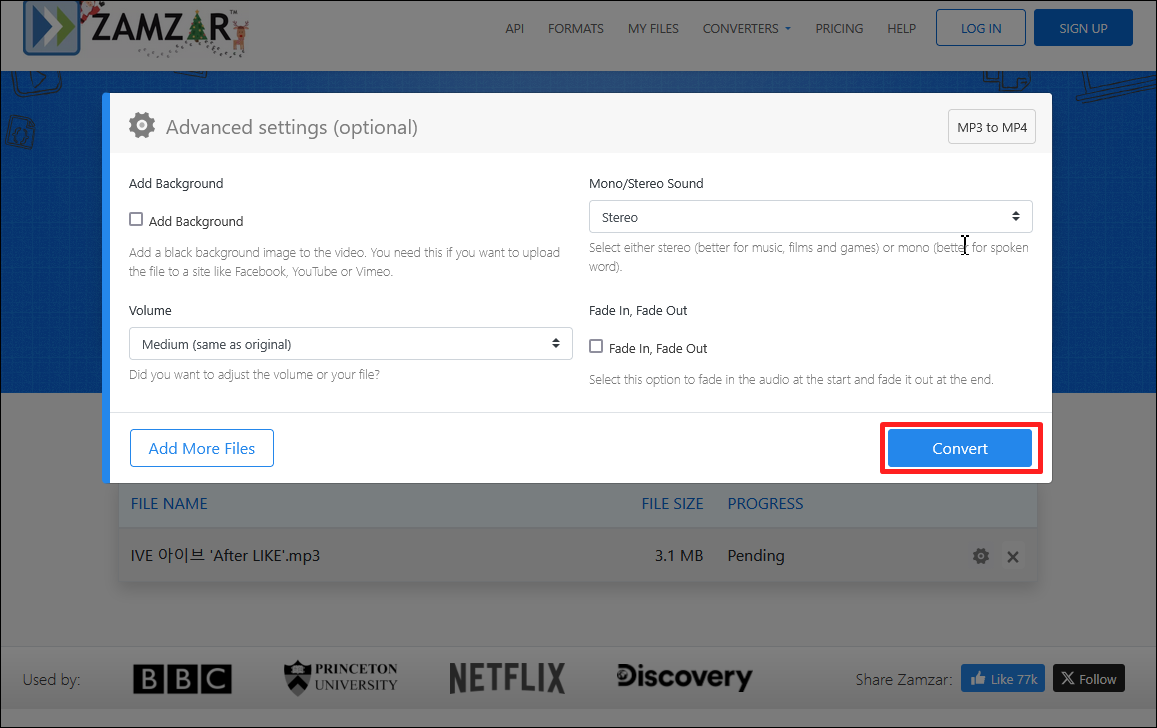 Download 를 눌러 변환된 파일을 내려받으시면 됩니다.