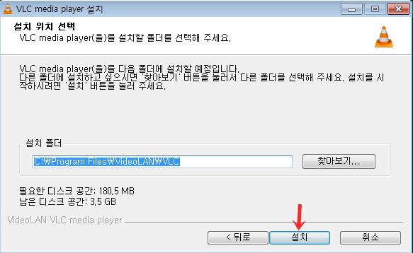 설치 경로는 그대로 두고 [설치] 버튼을 누른다.