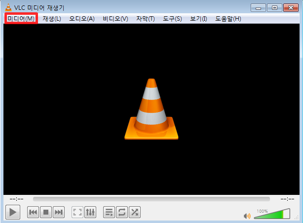 VLC 미디어 재생기가 실행되면 왼쪽 상단 "미디어" 메뉴를 클릭해줍니다.