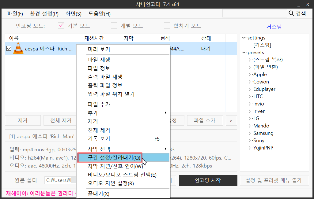 샤나 인코더 동영상 자르기 쉽게 따라해 봅시다~