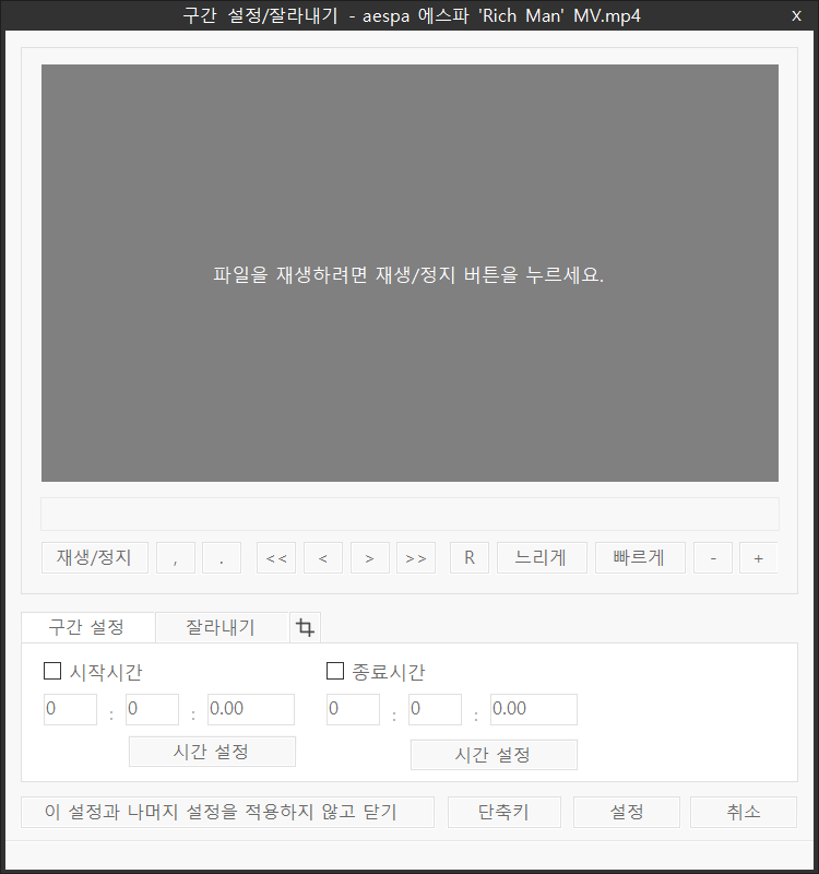 2. 별도의 구간 선택 창이 열리면, 여기서 영상의 시작점(Start) 과 종료점(End) 을 지정할 수 있습니다.