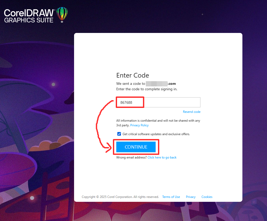 인증코드를 복사했으면 입력란에 붙여넣은후 CONTINUE 버튼을 눌러줍니다.
