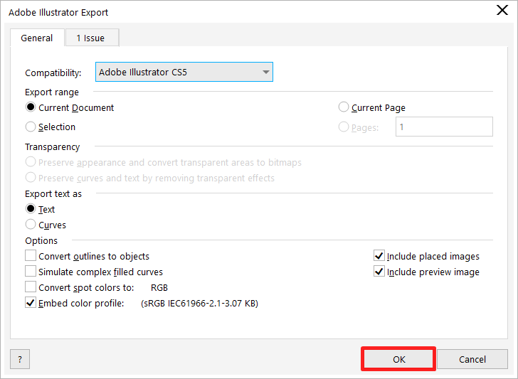 그럼 Adobe Illustrator Export 창이열리는데 OK 를 눌러 주면 됩니다.