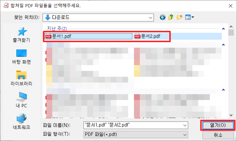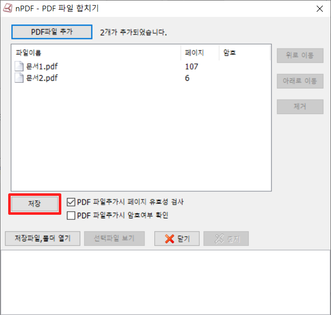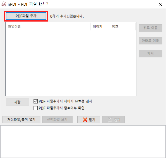 합치고자하는 PDF 파일을 추가 해주세요.