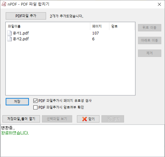 * 여러 개의 PDF 파일을 하나로 병합 가능