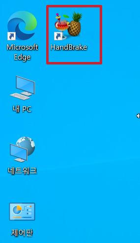 바탕화면을 보시면 HandBrake 바로가기 아이콘이 보이실겁니다 (파인애플 그림)