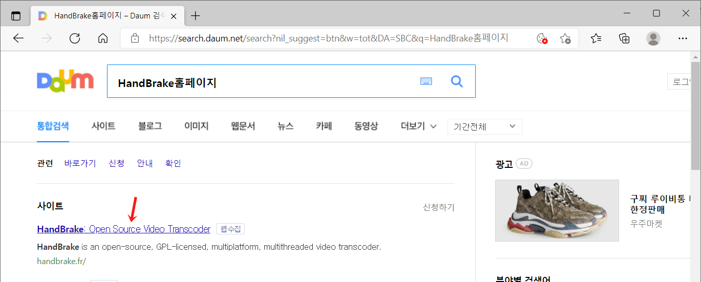 우선 Daum에서 handbrake홈페이지 를 검색해주세요.